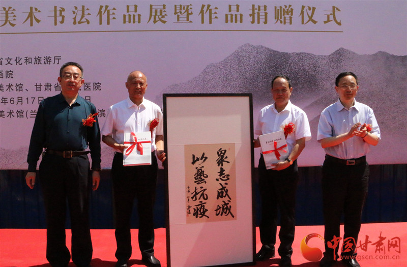 中国甘肃网6月17日讯 (本网记者 刘姗 何星丑)17日上午,“众志成城、以艺抗疫”甘肃省优秀美术书法作品展在兰州开展,本次入选所有作品全部义捐甘肃省人民医院。本次展览由甘肃省文化和旅游厅主办、甘肃画院承办。