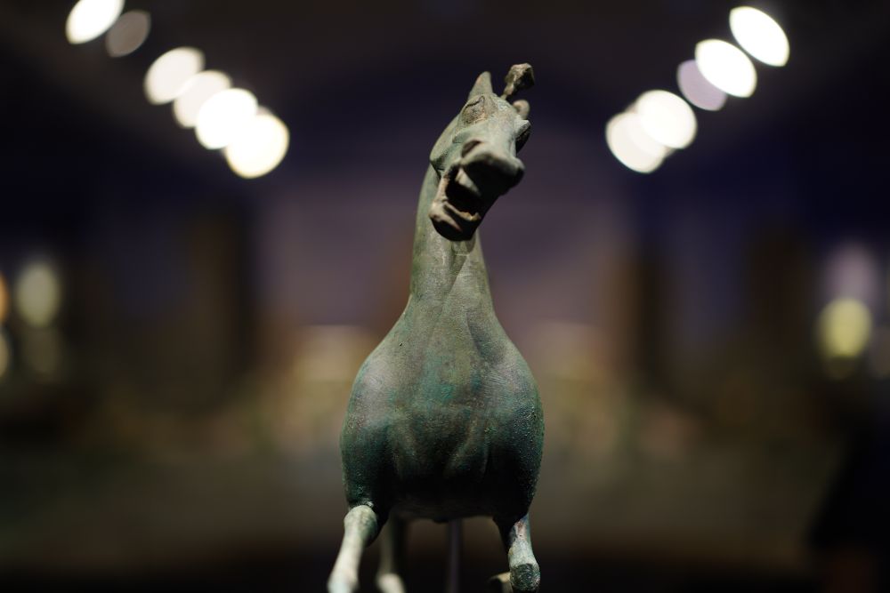 这是2020年6月12日在甘肃省博物馆拍摄的铜奔马的正面照。
