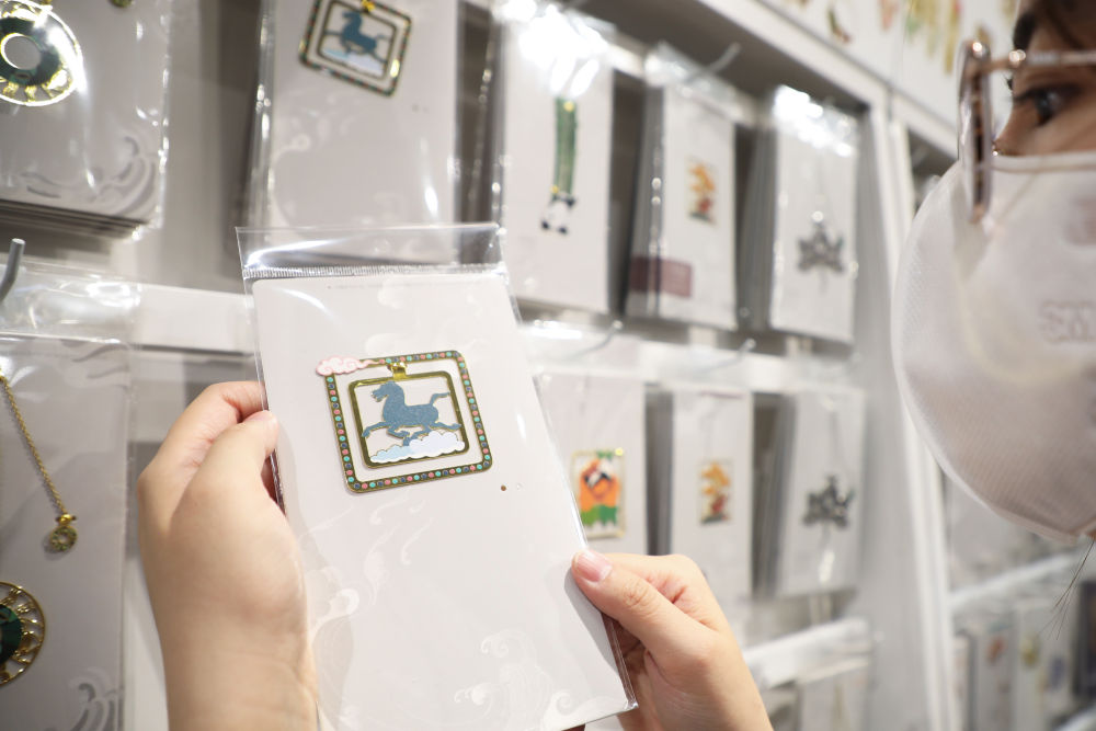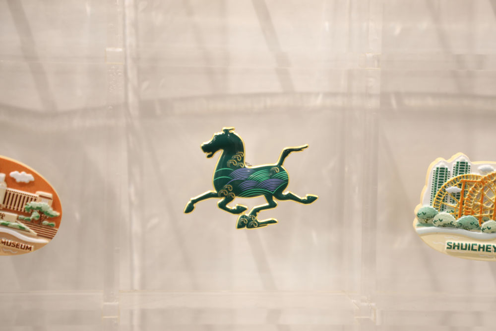 这是6月28日在甘肃省博物馆文创商店拍摄的铜奔马主题文创产品。(新华社记者 何问 摄)