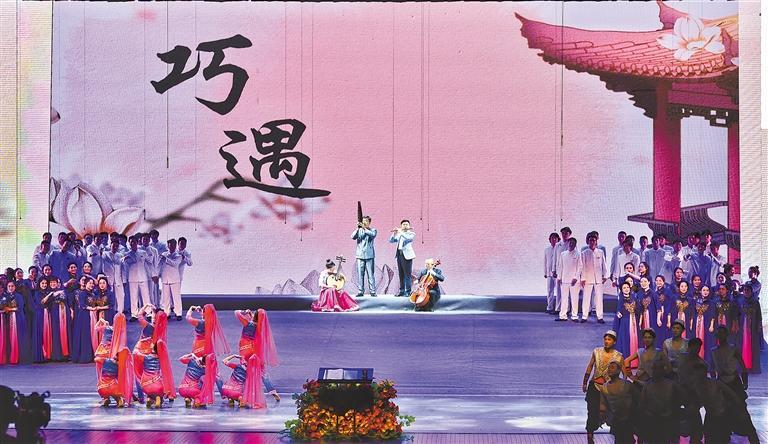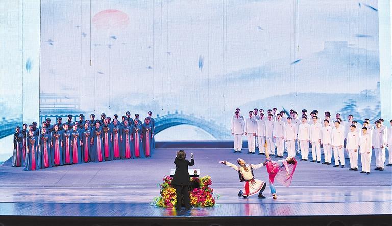 陇原大地逢盛会,春绿陇原谱新曲。日前,由甘肃省委宣传部、甘肃省文化和旅游厅主办,甘肃省歌剧院、西北民族大学音乐学院、甘肃陇韵合唱团承办的“春绿陇原·山花烂漫”原创情景合唱组曲《花儿是咱心上的话》在兰州音乐厅精彩开唱。整场合唱组曲分为“唱山”“巧遇”“少年咏唱”“花儿会”四个章节。