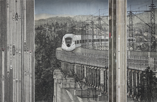 国画《中国高铁进大山》