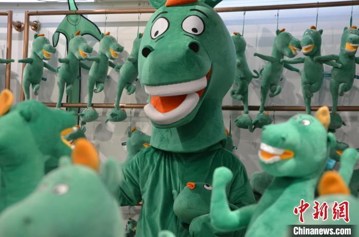 8月17日,在甘肃省博物馆内真人版“铜奔马毛绒玩偶”与众多铜奔马玩偶一起摆出不同造型。李亚龙 摄
