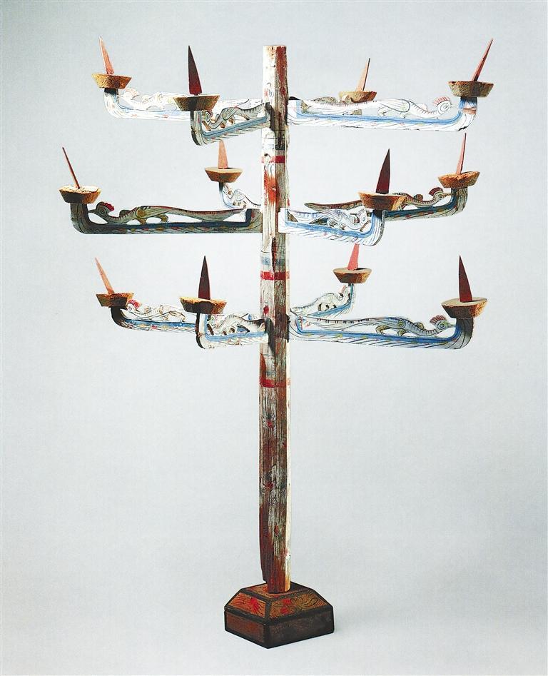 彩绘木连枝灯 魏晋