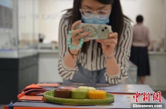 8月24日,兰州市民正在甘肃省博物馆内相互分享不同类型的文创月饼。 李亚龙 摄