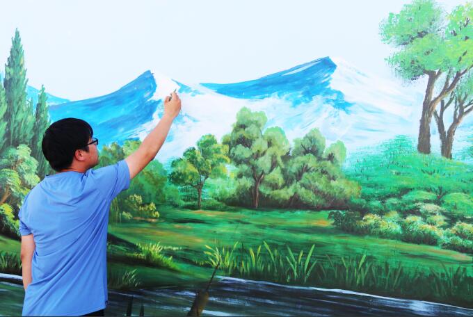 盛强画了20年了,从最初的墙体广告上写大字到如今的墙体彩绘,他越来越强烈地感受到国家对新农村建设与发展的重视。