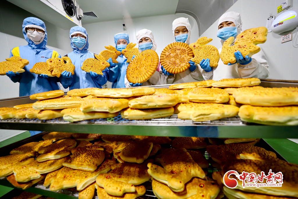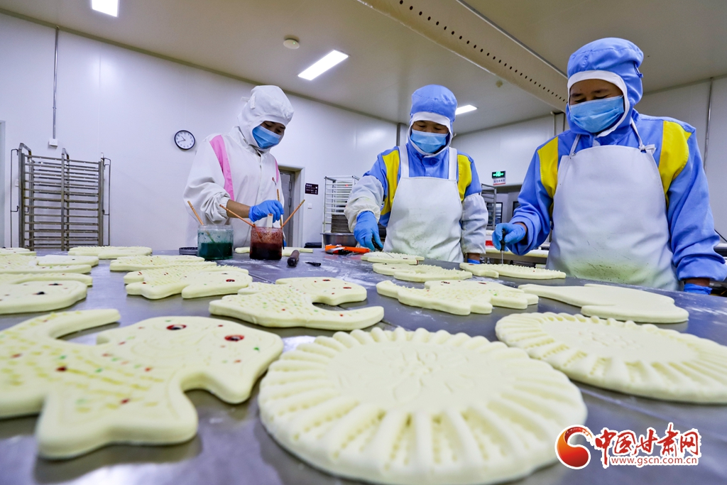 9月1日,在甘肃省张掖市甘州区一食品加工车间内,工作人员正忙碌加工中秋“土月饼”。“土月饼”是用面粉和适量的温水揉和成面团,醒发后制作成小狮子、小兔子、小鹿、金鱼和十二生肖等形状后烤制而成,用于中秋节敬月。