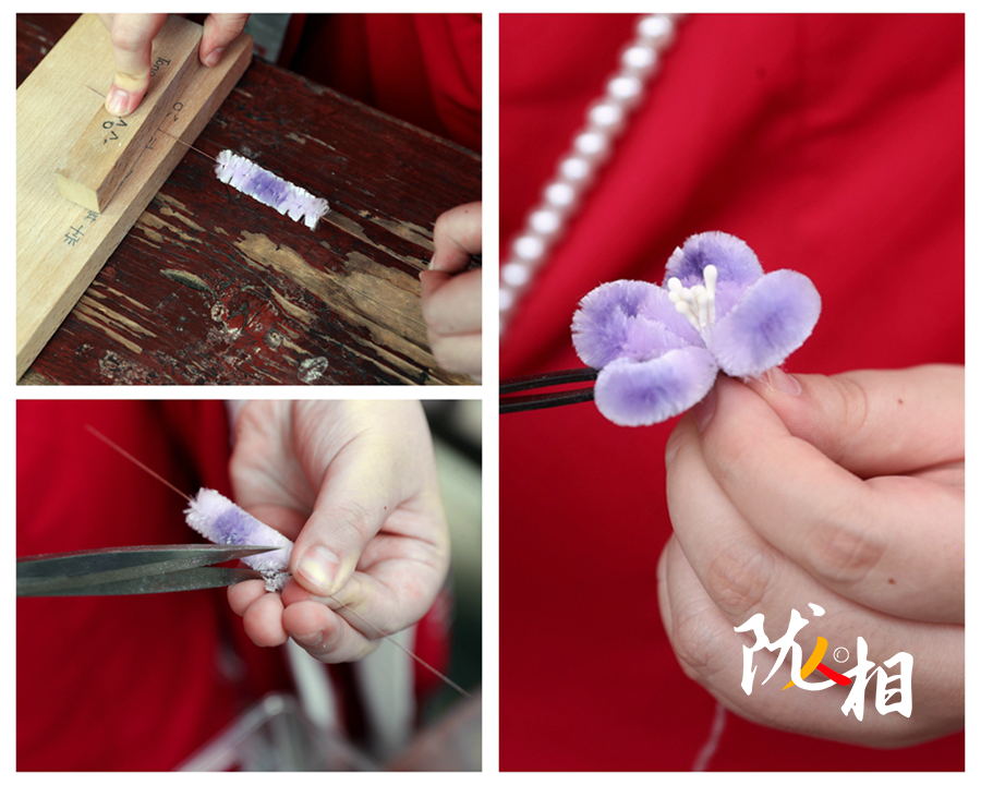 “我也在不断学习,现在可以用仿点翠工艺,让簪花更有质感。”宗怡彤说道。