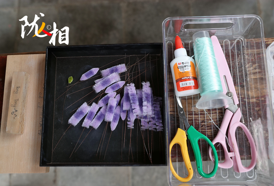排线、栓铜丝、裁剪宽度、勾挑搓丝、打尖、传花,每一个制作过程都需要耐心,制作一朵簪花少说也要一周时间。对于宗怡彤来说,学会簪花,也就学会了静下心来面对一切,在沉浸的时光,心无旁骛,才能享受最终的赏心悦目。