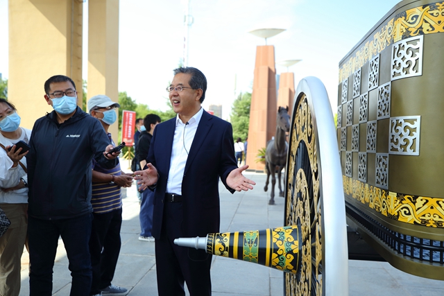 陈卫中表示,让文化成为新时代甘肃最鲜明的标识。我们将复制的车马与三年前精心设计制作的甘肃彩车放在一起展出,既古今对照、交相辉映,也一脉相承、昭示未来。甘肃彩车是“政治任务、文化元素、艺术作品、旅游景观”;战国戎人车舆是“探源工程、非遗元素、文化产品、旅游景观”。全省文旅系统要将更多的甘肃文化遗产和文物故事融入现代生活、赋能文旅产业,既要代代守护、薪火相传,也要紧跟时代、推陈出新,让文化成为最富魅力、最吸引人、最具辨识度的甘肃标识。