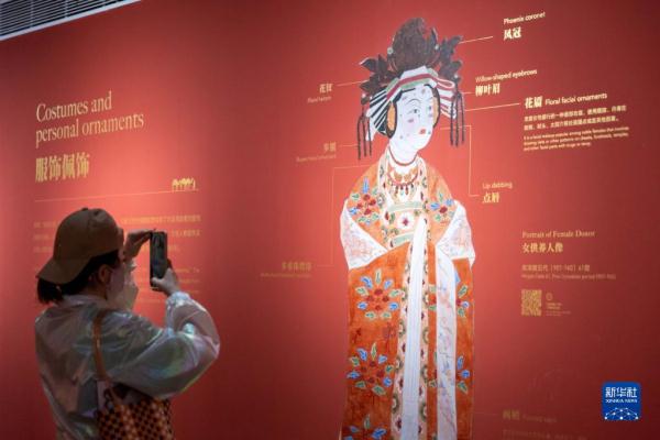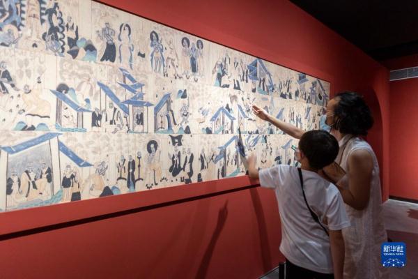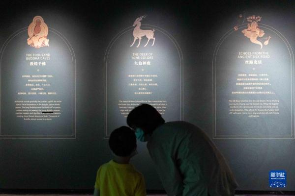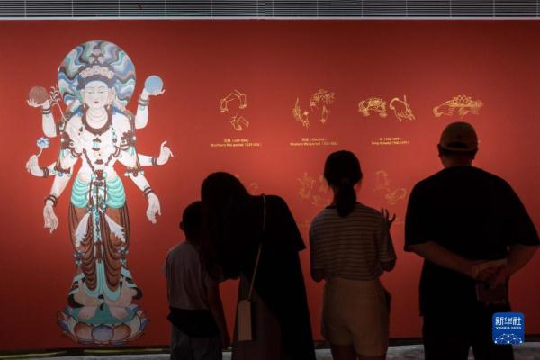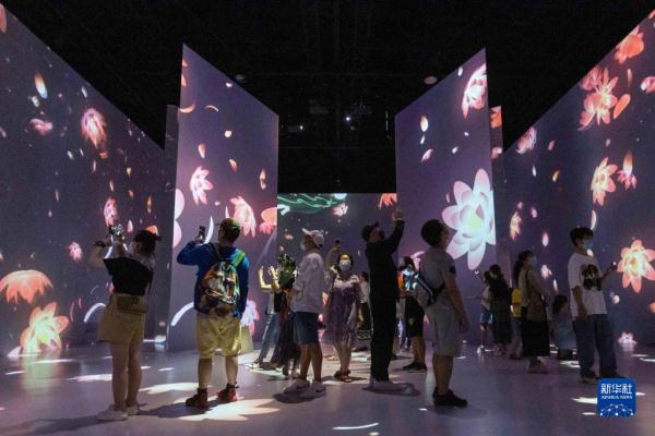 “遇见敦煌 光影艺术展”将于10月4日在遇见博物馆·上海静安馆开展。3日,部分媒体及观众提前参观体验。该展以敦煌文化艺术为核心,以艺术家重绘的200余幅敦煌石窟壁画作品为基础,通过3D光雕技术和数十台4K超清设备,在投影面积达1300平方米的空间中展现敦煌石窟的艺术魅力,为观众带来沉浸式体验。新华社记者 王翔 摄
