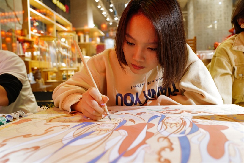 集中展示了敦煌壁画临摹、敦煌彩塑、敦煌石粉彩绘、敦煌木版雕刻画、敦煌剪纸等非遗项目,既传承弘扬了敦煌非遗文化,又丰富了市民、游客的节日文化生活,极大地提升了敦煌夜经济的活力。