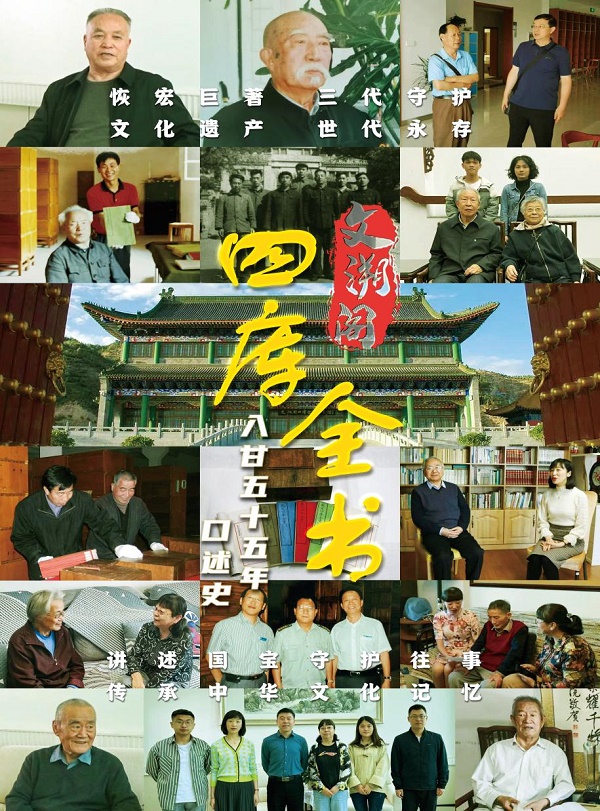 《文溯阁<四库全书>入甘55年口述史》是2020年甘肃省图书馆为纪念文溯阁《四库全书》入甘55年所申请的甘肃省哲学社会科学规划项目。该项目以口述、文字的双重形式向世人揭示文溯阁《四库全书》入甘以来发生的感人故事,通过对亲历和见证过文溯阁《四库全书》保护、管理、研究、开发工作的相关人员的采访,展现了陇原儿女为文化事业坚守信念、甘守清贫、默默奉献、责任担当的优秀品格。目前,项目已整理档案100余件、25万余字,访谈人物31位,录制视频1100分钟,收集图片209张,撰写报告5万余字、论文3篇,为文溯阁《四库全书》的存藏建设、管理保护、学术研究、宣传推广留下了一手历史口述资料。
