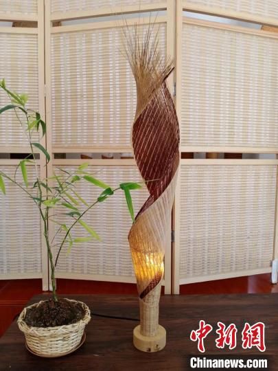 图为竹编火炬落地灯。(资料图) 甘肃省非遗保护中心供图