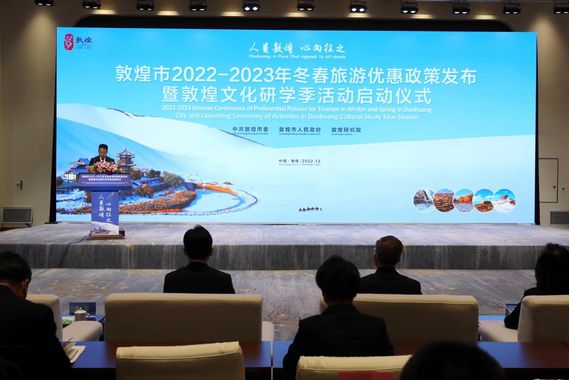 从12月15日敦煌市举行的2022-2023年冬春旅游优惠政策发布暨敦煌文化研学季活动启动仪式上了解到,甘肃酒泉敦煌市制定出台多项冬春旅游优惠政策措施,吸引游客、拉动消费,促进文旅市场回暖复苏。