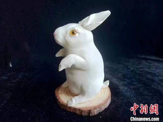 连日来,甘肃省非遗保护中心集中展示该省非遗传承人手工制作的兔子。图为安秋平所捏“面塑兔”。 甘肃省非遗保护中心供图