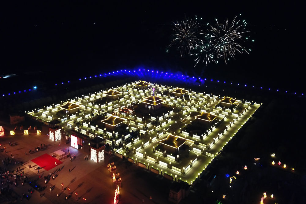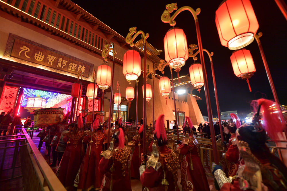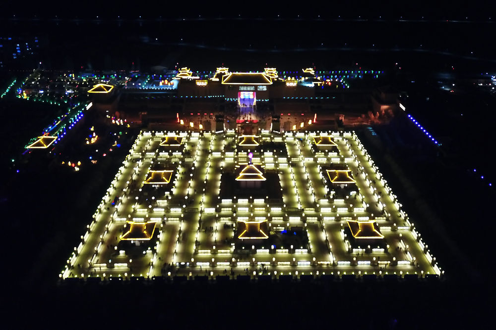 这是1月31日拍摄的九曲黄河灯阵启灯仪式。新华社记者 范培珅 摄