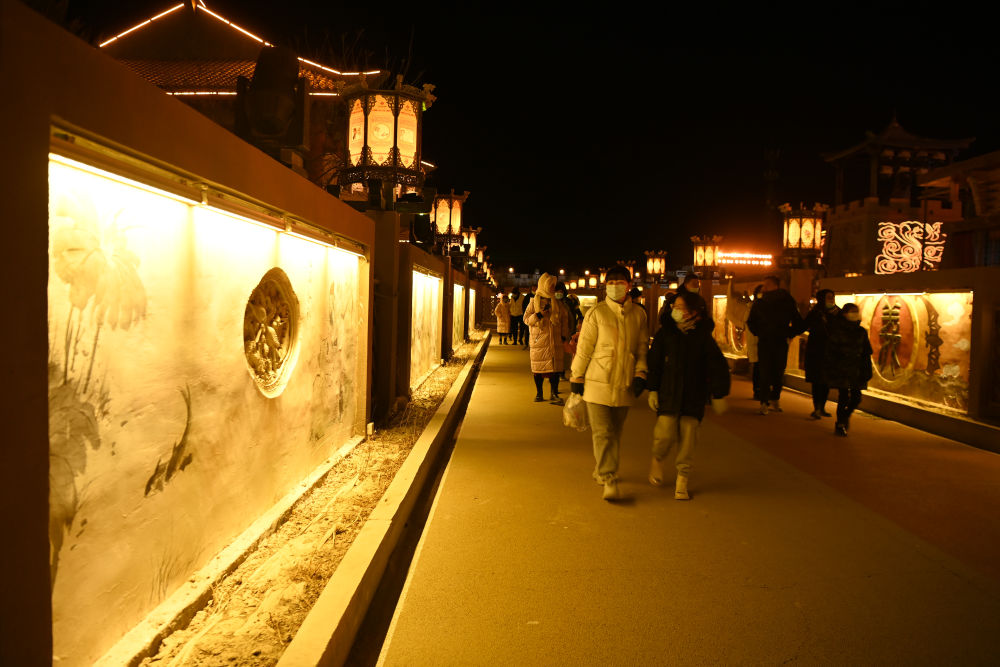 1月31日,游客在九曲黄河灯阵游览。新华社记者 范培珅 摄
