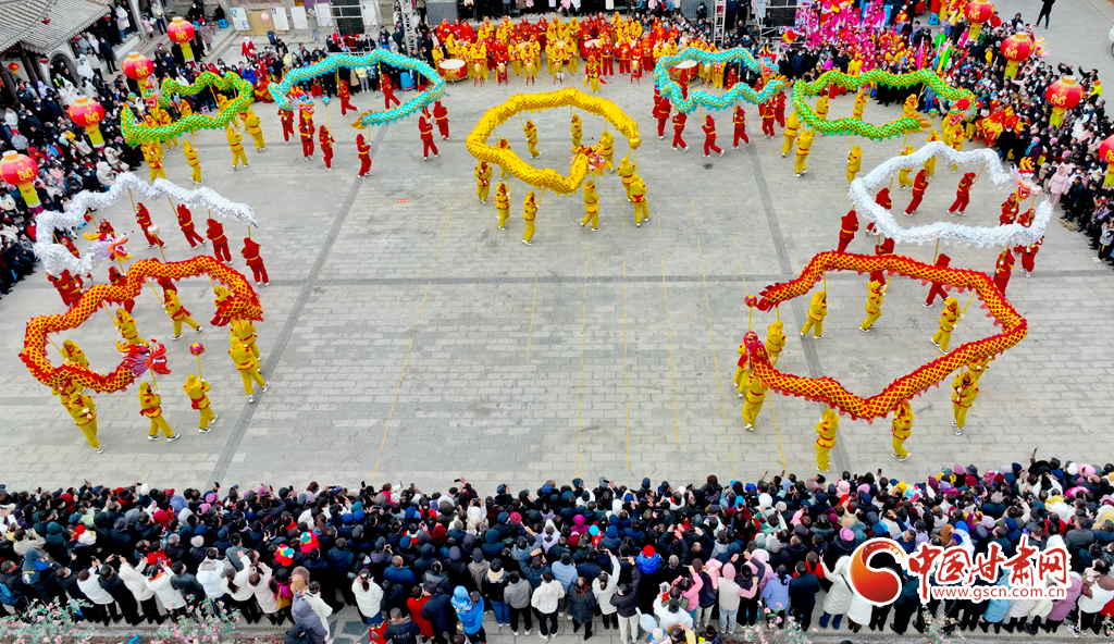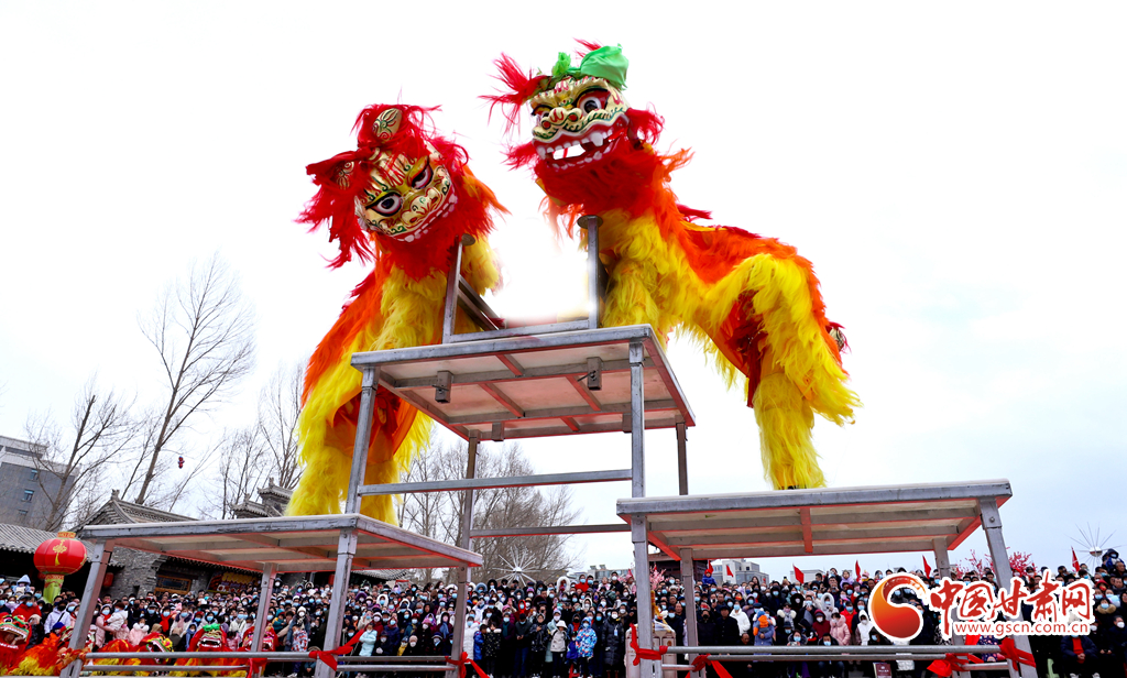 2月2日,张掖市民乐县开展庆新春迎元宵文化惠民社火汇演活动,在民俗文化村内群龙游腾、高台舞狮、醉狮等精彩的舞龙舞狮节目精彩上演,让市民在春节期间乐享文化大餐。
