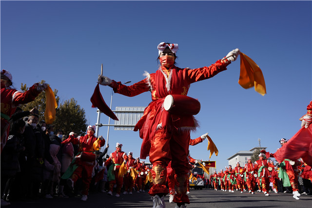 全省各地社火、秧歌表演,传达出人们祈盼生活红火、富裕安康的真挚愿望。忙碌了一年的陇原儿女,用舞蹈、音乐、游弋等方式敬神娱人,狂欢庆祝。街头巷尾,人头攒动,老百姓成为庆祝活动的直接参与者、欣赏者和传播者。在祥和喜庆的氛围中,人们三五成群,驻足观赏,舒展身心,拍手叫好,忘却了平日的辛苦,感受到生命的酣畅,心中充盈着追求家国富足和美、蒸蒸日上的质朴愿望,也推动实现非遗融入当代社会、走进人民群众,彰显了甘肃非遗的独特魅力和生生不息的创造力。