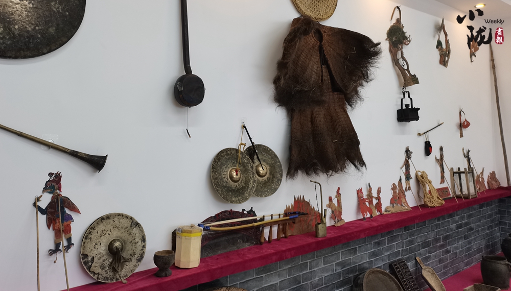 一张幕布、两盏白炽灯、四五老艺人、七八件简单乐器,艺人在白色幕布后面,一边用手操纵戏曲剪纸人物,一边用本地流行曲调唱述故事,同时配以器乐以增加演戏气氛。
