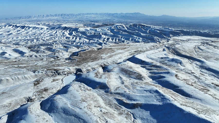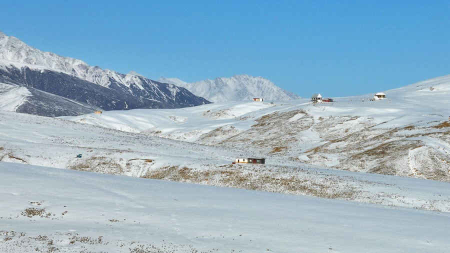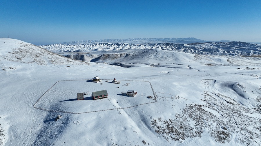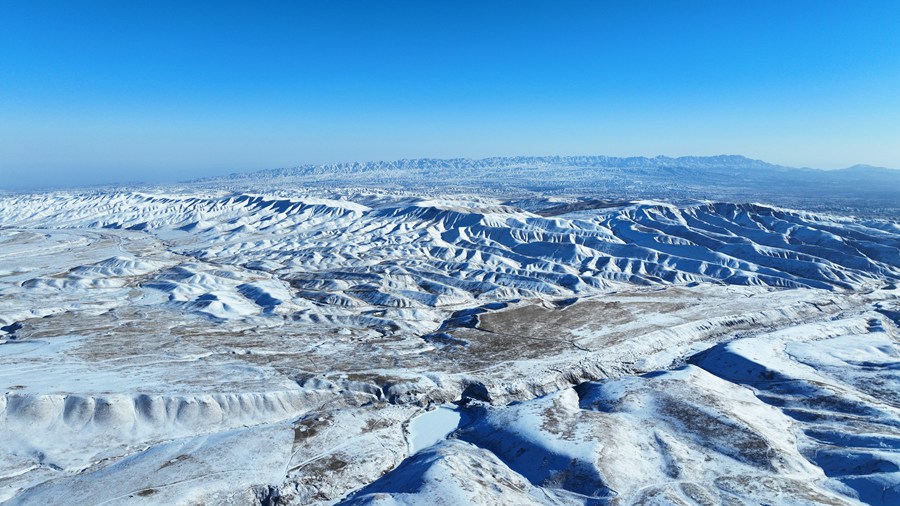 2月14日,甘肃张掖肃南县祁连山国家公园雪后初霁,静美如画。成群牦牛和马鹿点缀着雪后的草原,与蓝天、雪山构成了春季高原壮美的画卷。