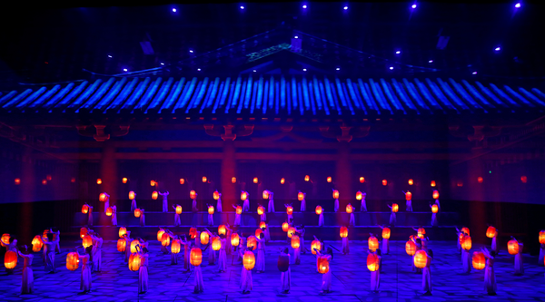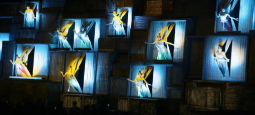 与其说《又见敦煌》是一场演出,不如说是一次可以亲历穿越的体验。进入剧场,观众便踏入了一个盛大瑰丽的幻境空间。在这迷宫式的剧场中,设置了罕见的超大型联动舞台机械装置、3D影像装置、移动巨幕装置,28台升降机同时工作,许多特技效果均属首创。在这个空间里,观众不只是艺术的欣赏者,更是演出的真正参与者。