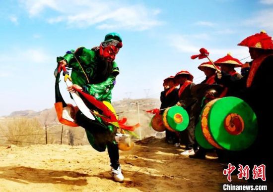 图为甘肃临夏州永靖县村民表演傩舞。(资料图) 侯奇志 摄