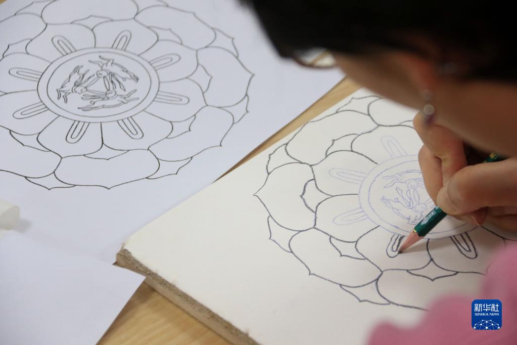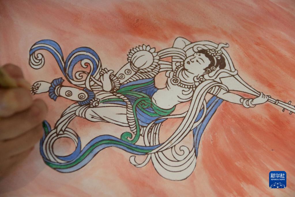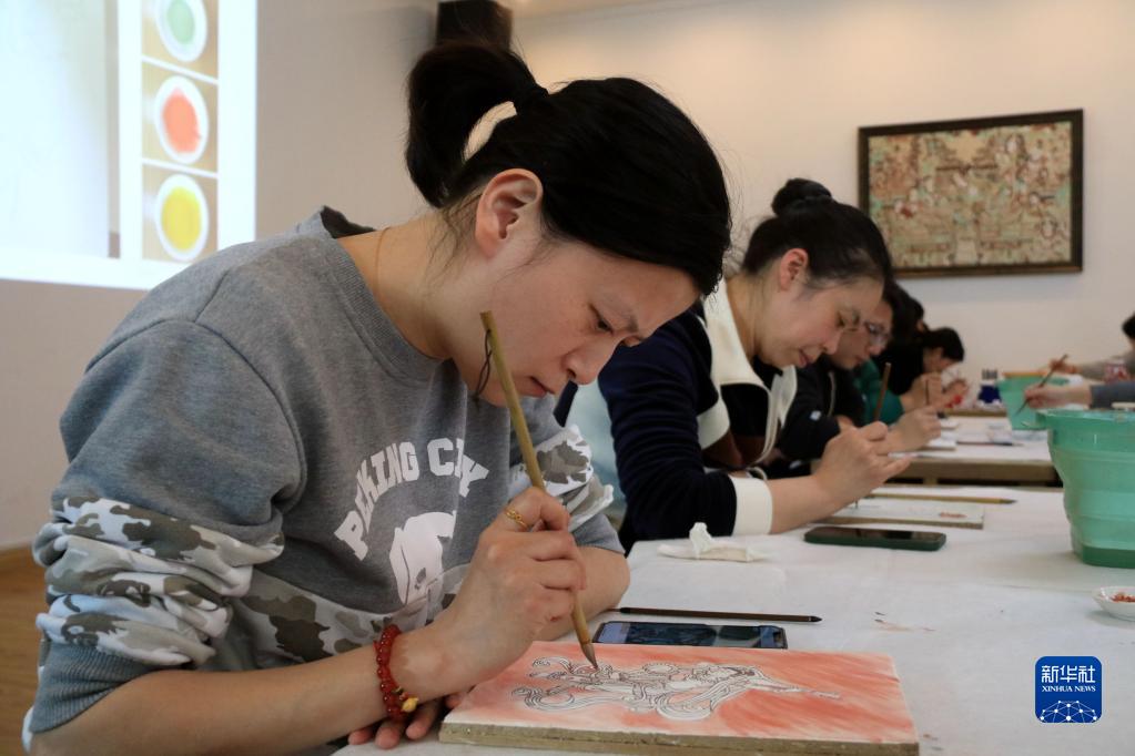 2月23日,学员在敦煌研究院莫高学堂学习临摹敦煌壁画。新华社发(张晓亮 摄)