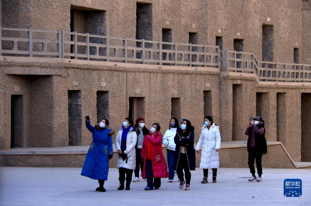 2月23日,参加莫高学堂敦煌文化研学的学员在莫高窟参观。新华社发(张晓亮 摄)