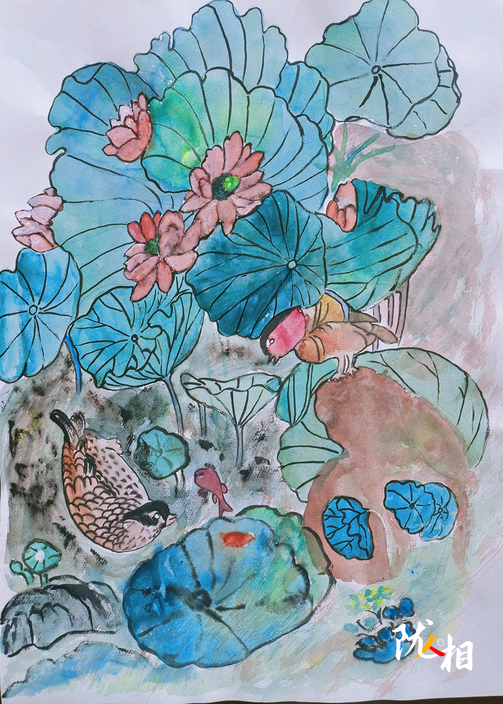 自从到了敬老院,在护理人员的帮助下,开始学习写字,弥补之前的遗憾。一次偶然的机会,在电视上看到了绘画,就有了试试的想法,便开始自学画画,来打发晚年的时光,刚开始就照着书上、电视上的画作照葫芦画瓢,时间长了,就摸索出一些门道。