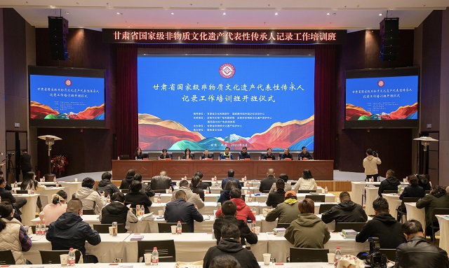 3月28日上午,由甘肃省文化和旅游厅、国家图书馆中国记忆项目中心指导,甘肃省非物质文化遗产保护中心主办、陇西县文化馆承办的甘肃省国家级非物质文化遗产代表性传承人记录工作培训班开班,部分国家级非遗代表性传承人,兰州文理学院文学院、兰州职业技术学院非遗学院记录团队,省非遗保护中心各项目负责人,以及14家公司摄制团队,共计70余人参加了本次培训。省非遗保护中心、定西市文旅局、定西市非遗保护中心、陇西县人民政府等单位相关负责人出席了开班仪式。