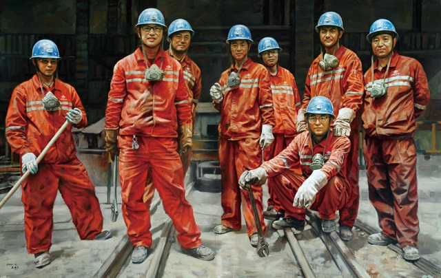 《铁山精神—新时代矿山人》|布面油画|225x360|2021年