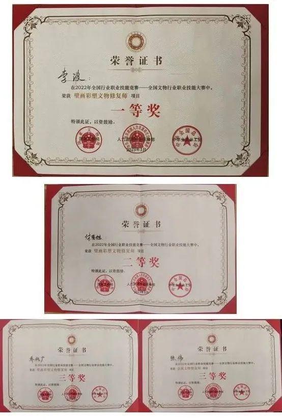 甘肃省共选派11名选手参加了壁画彩塑文物修复师、金属文物修复师等6个项目所有比赛,选手们经过14个小时的精心修复,用匠心妙手让沉睡已久的文物重获新生。经大赛组委会评议,甘肃省敦煌研究院李波、付有旭、乔兆广等3名选手分别荣获壁画彩塑文物修复师项目一等奖、二等奖和三等奖,甘肃省文物考古研究所张伟荣获金属文物修复师项目三等奖。