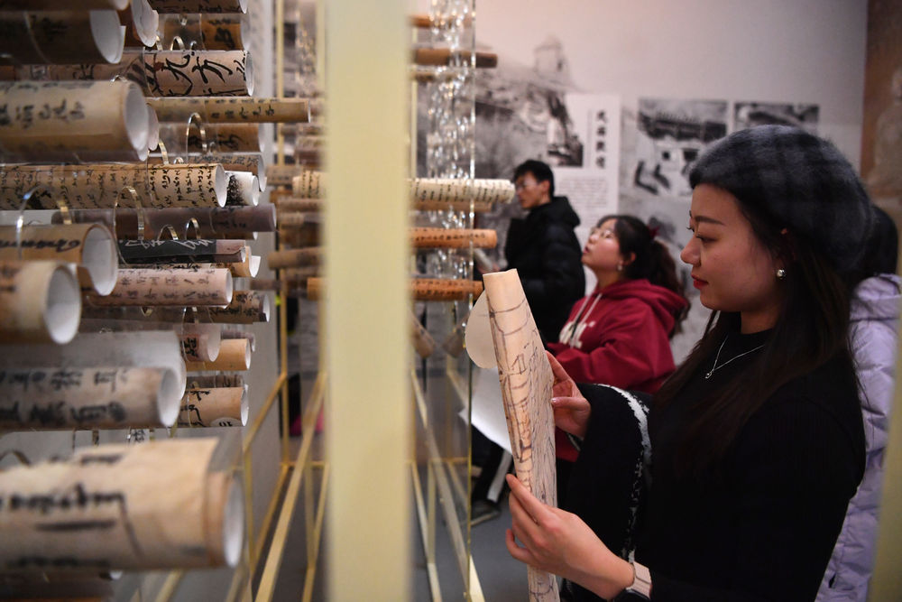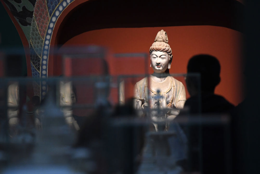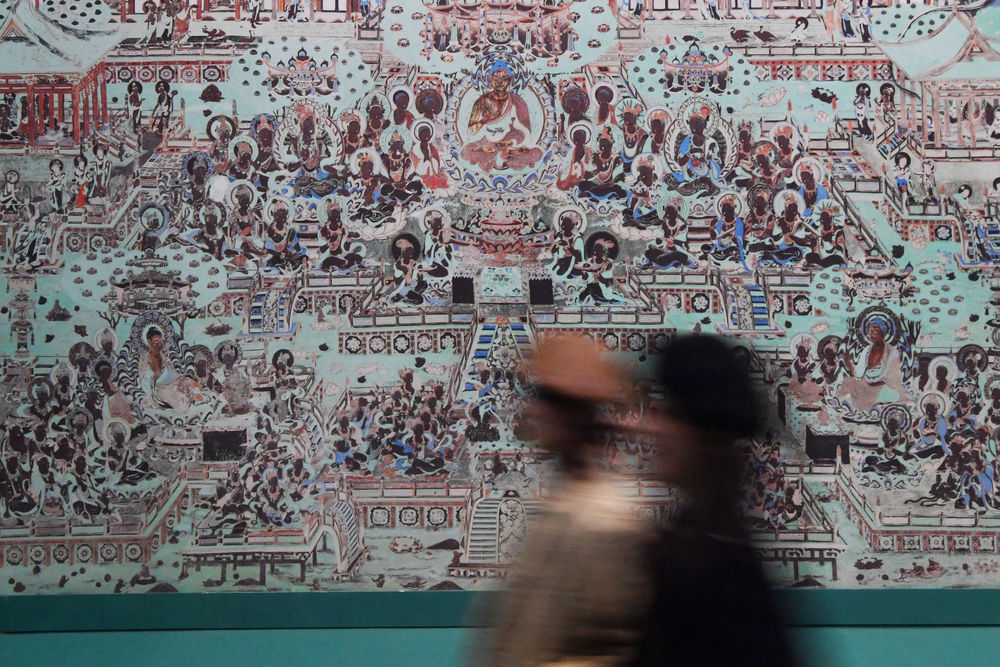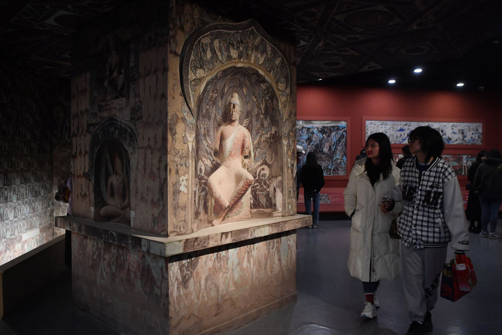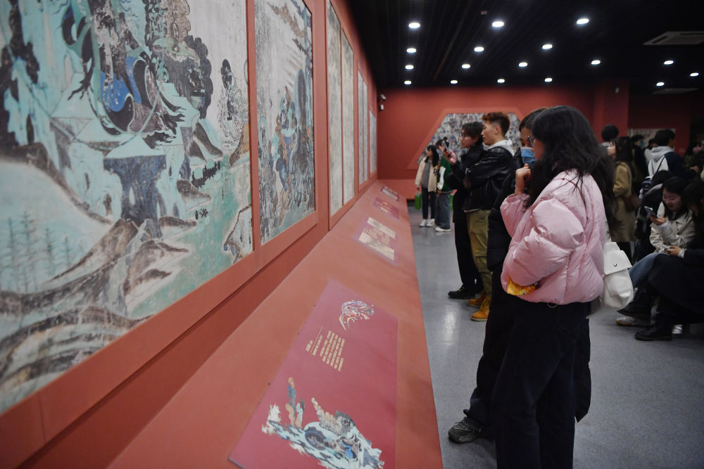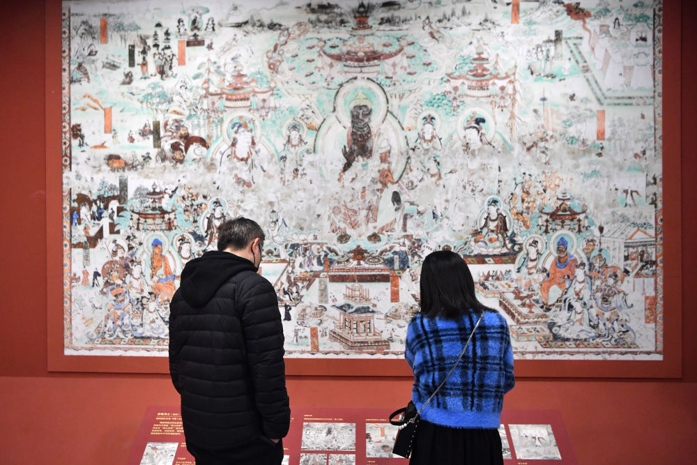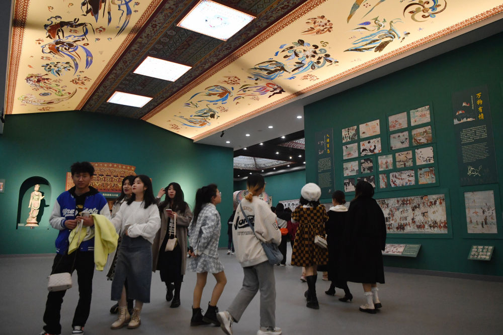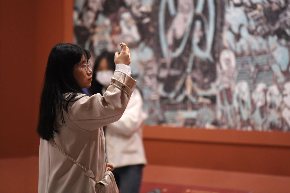 4月5日,观众在敦煌研究院兰州分院敦煌艺术馆参观。新华社记者 陈斌 摄