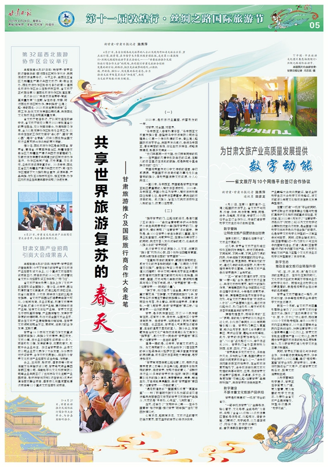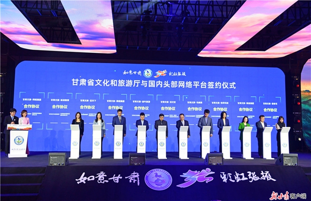 4月27日,在第11届敦煌行·丝绸之路国际旅游节上,省文旅厅与网易、抖音、快手、新浪微博、携程、同程、途牛、马蜂窝、支付宝、爱奇艺10个网络平台签订合作协议,开启打造甘肃数字文旅生态升级版新征程。