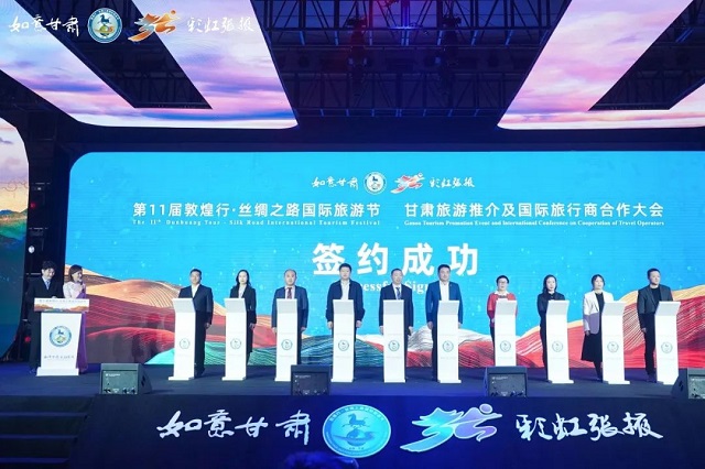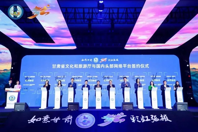 在甘肃旅游推介及国际旅行商合作大会上,甘肃省文化和旅游厅分别与网易、抖音、快手、新浪微博、携程、同程、途牛、马蜂窝、支付宝、爱奇艺10个网络平台签订合作协议,开启了打造甘肃数字文旅生态升级版新征程。同时,组织甘肃长城国际旅行社有限责任公司与马来西亚马中旅游有限公司、甘肃旅游(控股)有限公司与江西旅游科技集团有限公司、甘肃兰铁国际旅行社有限公司与四川成都铁路国际商旅集团有限公司等20家国内外重点旅行商代表进行了游客互送合作签约。甘肃省文化和旅游厅承诺以最大的诚意、最优的环境、最强的力量、最好的服务,为企业营造更优良的环境,提供更优质的服务,落实更优惠的政策,创造更具创业潜力和人文关怀的发展舞台。