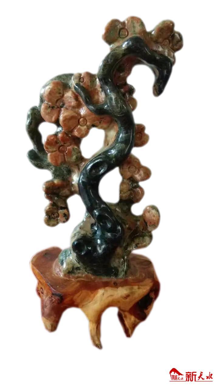 庞公石,又叫庞公玉,产于清水县红堡镇庞公庵山下牛头河及小华山一带。该石天然妙成,玉质地缜密坚致、朴实高雅,以深绿色为主,黄、红、白褐、金等各色如梦如幻的翠纹萦绕于石,饱含诗意、气韵生动。清水民间艺人根据其玉料的天然形态和纹理特征,通过一定的方法,创作出各种形态的庞公玉工艺品。20世纪90年代初,在北京举办的庞公玉展览会上,其更被誉为“中国一绝”。