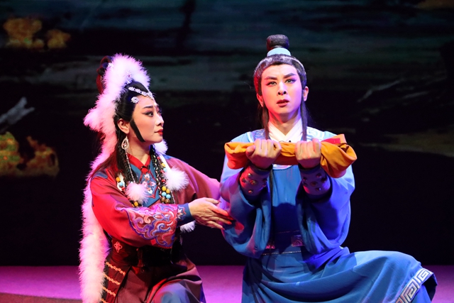 5月29日晚,在甘肃省陇剧院百姓戏剧场舞台上,一幅宏伟的陇剧版“敦煌画卷”徐徐展开。“狼烟起,刀兵动,祁连冰水血染红,铁骑踏碎敦煌梦,塞外长驱西夏兵……”由省陇剧院青年演员饰演的回鹘王族之女格丽莎扮相秀美,一开嗓就以明快、嘹亮的唱腔“先声夺人”。随后,由青年演员饰演的赵行德在一招一式间,将文弱书生的才气和重情重义拿捏得恰到好处。两人意外相遇的戏份更是将互诉衷肠演绎得入木三分,令人动容。