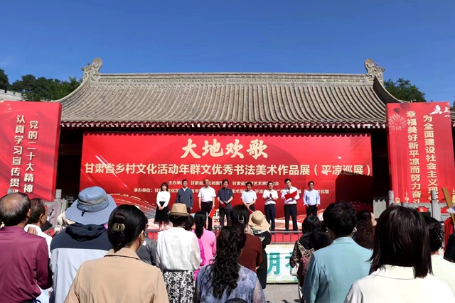 6月14日上午,“大地欢歌”甘肃省乡村文化活动年群文优秀书法美术作品展(平凉巡展)在平凉市文化馆开幕。此次活动由甘肃省文化和旅游厅、甘肃省文学艺术界联合会主办,甘肃省文化馆、甘肃省书法家协会、甘肃省美术家协会、平凉市文体广电和旅游局、平凉市文化馆承办,以“乡村振兴∙绚丽陇原”为主题的群文优秀书法美术展览,是“大地欢歌”甘肃省乡村文化活动年重大系列活动之一。