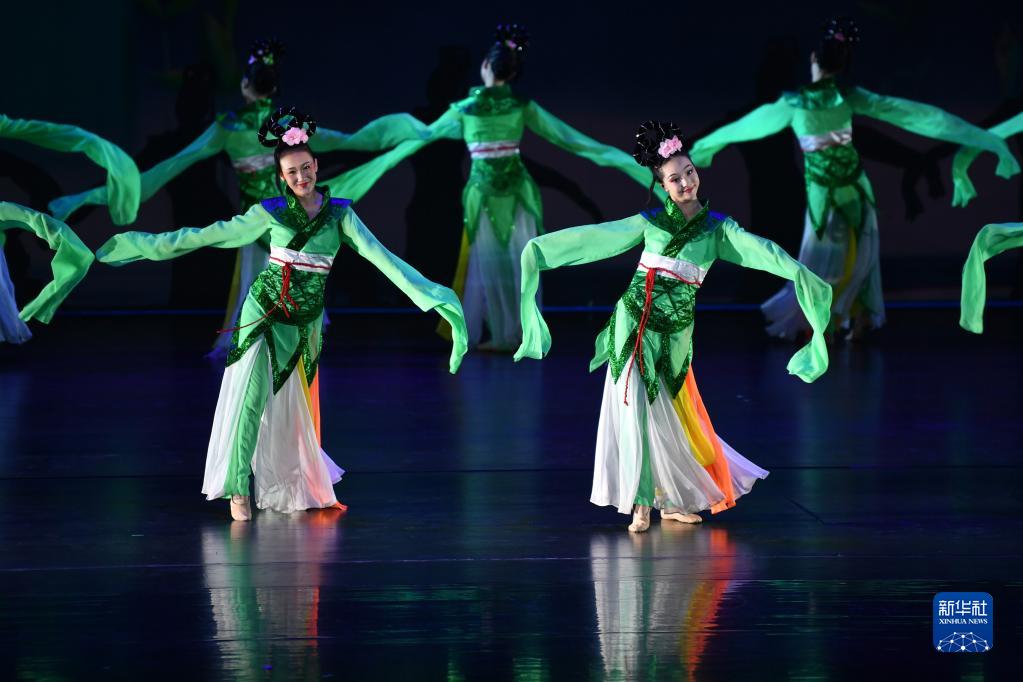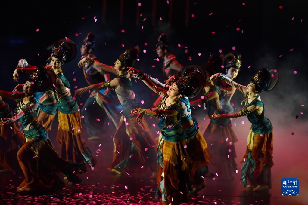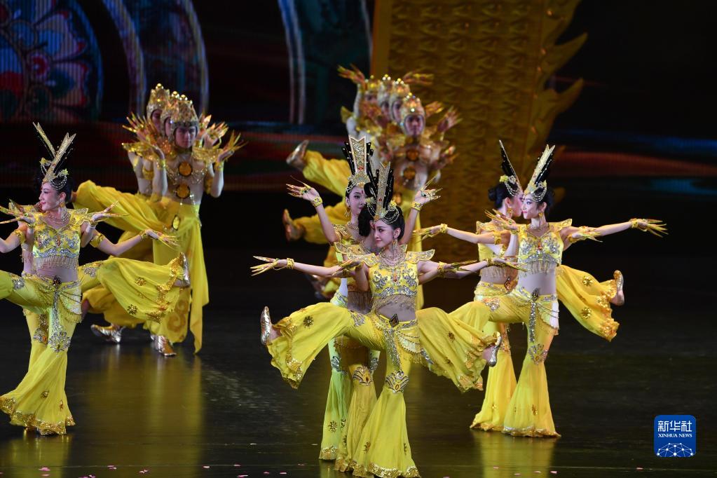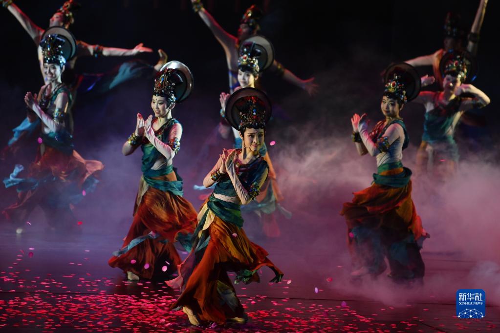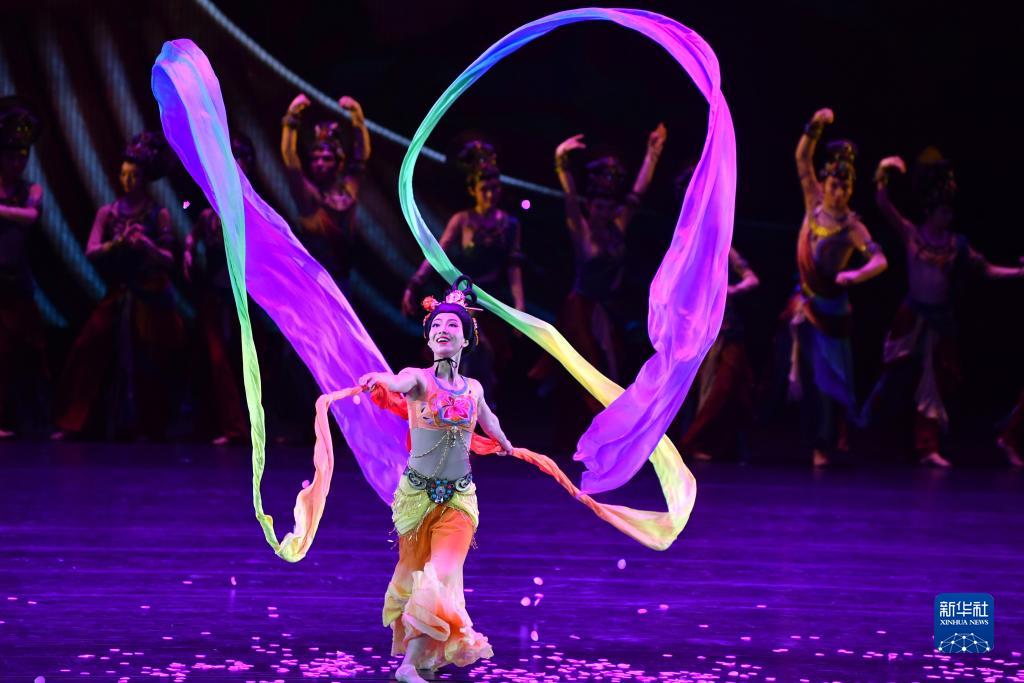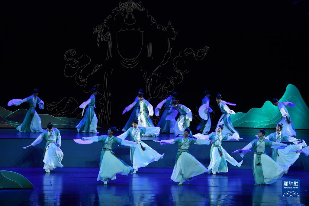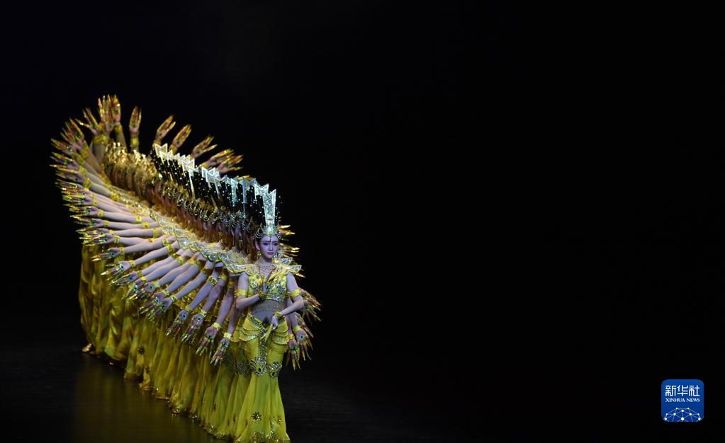中国残疾人艺术团演员在敦煌大剧院表演大型情景音画剧《千手千眼》(6月18日摄)。新华社记者 陈斌 摄