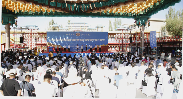 盛夏时节,万木竞秀,繁花似锦。6月26日上午,由中共甘肃省委宣传部指导,甘肃省文化和旅游厅、中共酒泉市委、酒泉市人民政府共同主办的甘肃省非遗展示展销暨全省非遗文创大赛系列活动在敦煌市“乐动敦煌”文旅综合体盛大开幕。中国工业设计协会会长刘宁出席开幕式并讲话,省委宣传部常务副部长、省电影局局长马玉萍出席并宣布活动开幕,省文化和旅游厅党组成员、副厅长吕兴来出席并讲话,酒泉市委常委、宣传部部长义战鹰致欢迎辞,甘肃演艺集团党委委员、副总经理张国伟参加开幕式,酒泉市委常委、敦煌市委书记石琳主持开幕式。