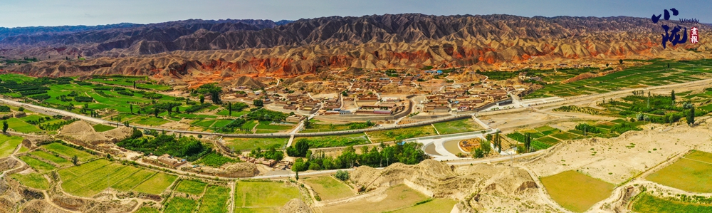 景泰县中泉镇三合村村居星罗棋布,田畴交错、绿树成荫。