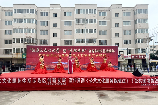 7月13日,随着白银市白银区武川新村社区惠民演出成功举办,标志着由省文化和旅游厅主办的“陇原儿女心向党”暨“大地欢歌”全省乡村文化活动年送文化惠民演出下乡活动圆满收官。此次惠民演出由甘肃演艺集团敦煌艺术团具体实施。