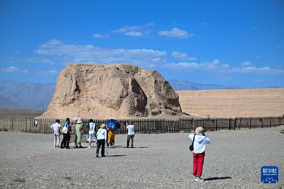 游客在甘肃省嘉峪关市参观长城第一墩(7月14日摄)。新华社记者 陈钟昊 摄