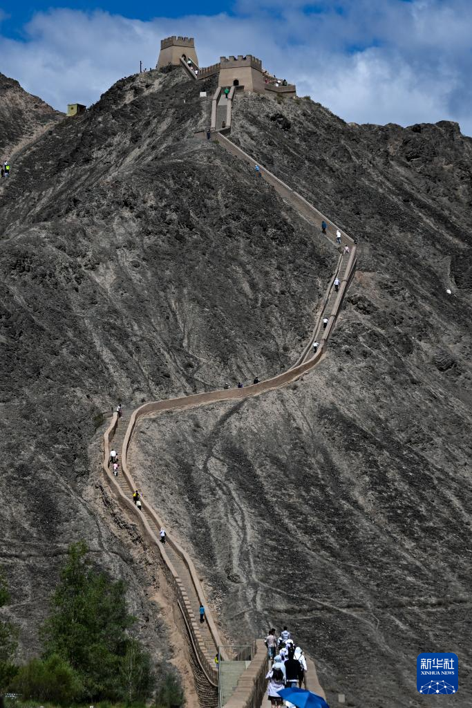 游客在甘肃省嘉峪关市游览悬壁长城(7月13日摄)。新华社记者 刘金海 摄