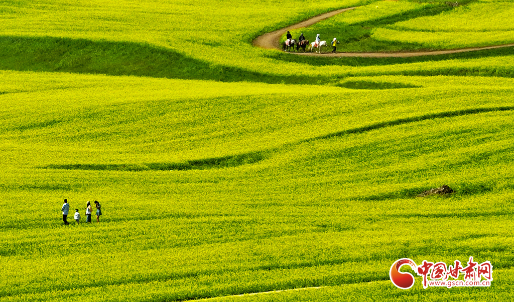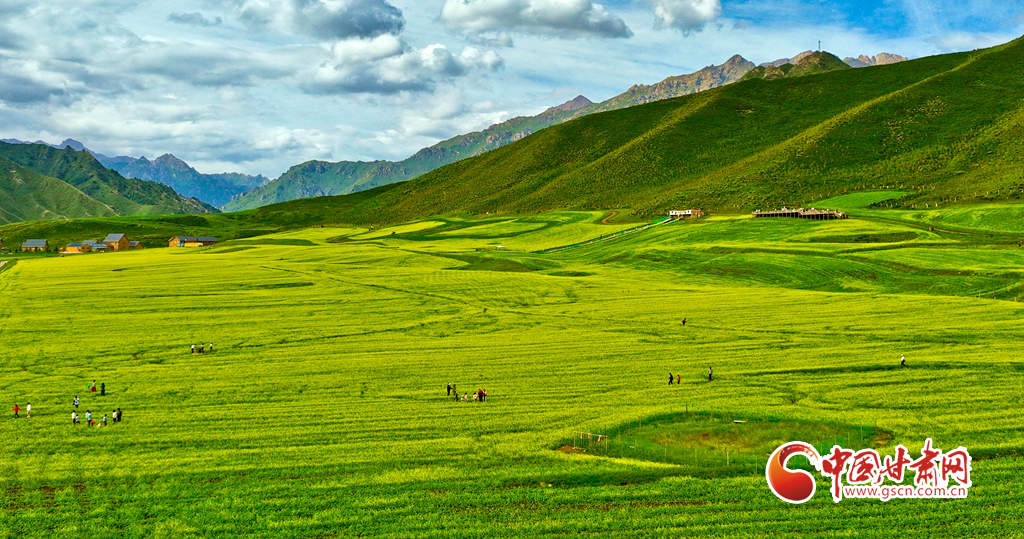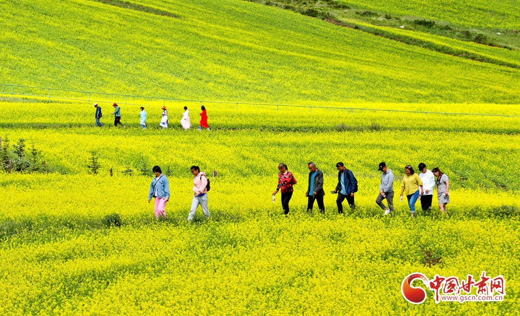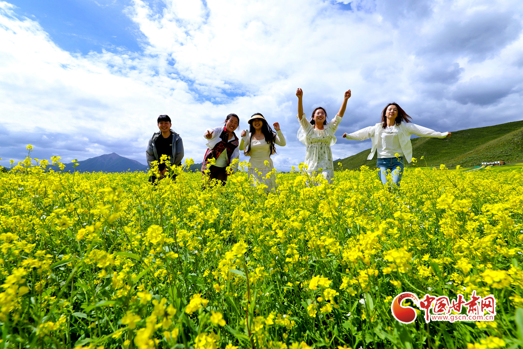 连日来,甘肃省张掖市民乐县万亩油菜进入盛花期,金黄的油菜花海与草原绿野相连,在蓝天白云的映衬下美不胜收,成为河西走廊地区的一道别致风景,吸引了众多国内外游客前来观光旅游。