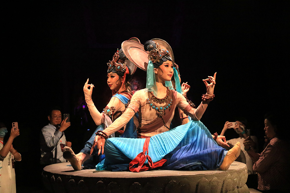 图1、2、3、4为全球首部洞窟式沉浸体验剧《乐动敦煌》剧照。