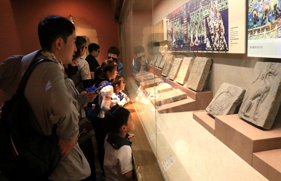 暑假期间,不少小朋友在家长的陪伴下走进甘肃省敦煌市博物馆,学习历史知识,感知敦煌文化。(记者 黄帆)