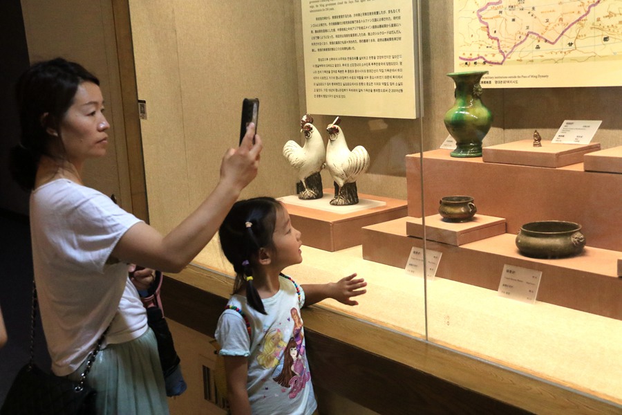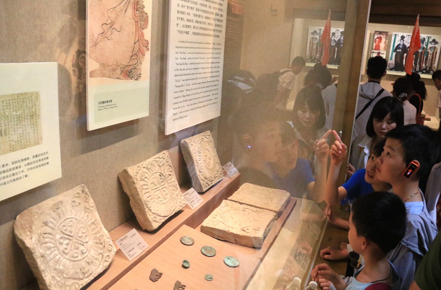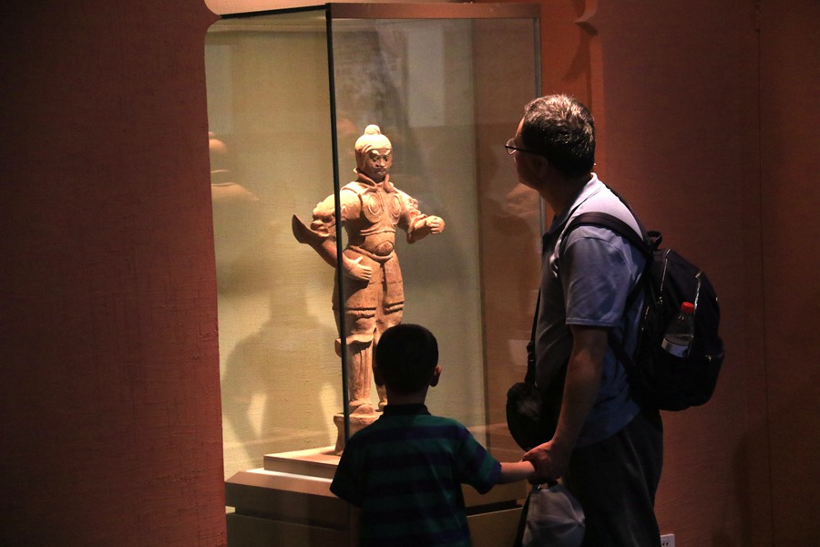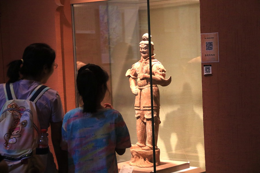 暑假期间,小朋友在家长的陪伴下,在敦煌市博物馆参观文物展。张晓亮摄