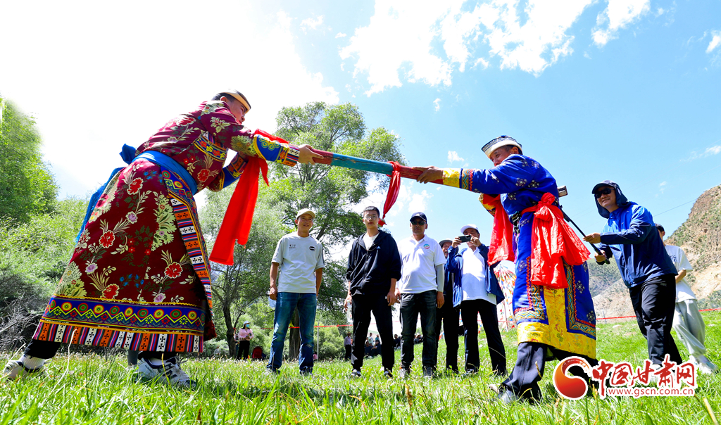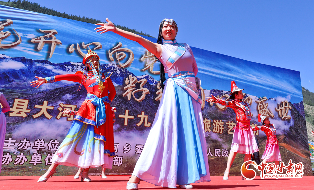 7月22日,甘肃省张掖市肃南裕固族自治县大河乡以“石榴花开心向党·籽籽同心迎盛世”为主题的第十九届文化旅游艺术节在松木滩裕固族特色村寨拉开帷幕。当地裕固族、藏族的农牧民群众通过举行民族歌手大奖赛、裕固族服饰展演、传统民族体育运动比赛等多彩民族特色文体活动,吸引青海及周边区县的万名游客探秘雪山草原美景、体验民族特色风情。